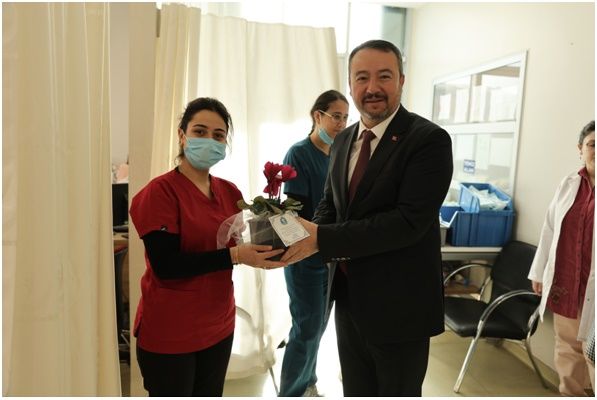 Sandıklı Belediye Başkanı Adnan Öztaş, Sandıklı Belediyesi Kültür ve Sosyal İşler Müdürlüğü ekipleriyle birlikte 22 Kasım Diş Hekimleri Günü dolayısıyla Sandıklı Devlet Hastanesi ve ilçemizdeki diş kliniklerini ziyaret etti. Ziyaretlerde, SANJET seralarında yetiştirilen çiçekler diş hekimlerine takdim edilerek özel günleri kutlandı.